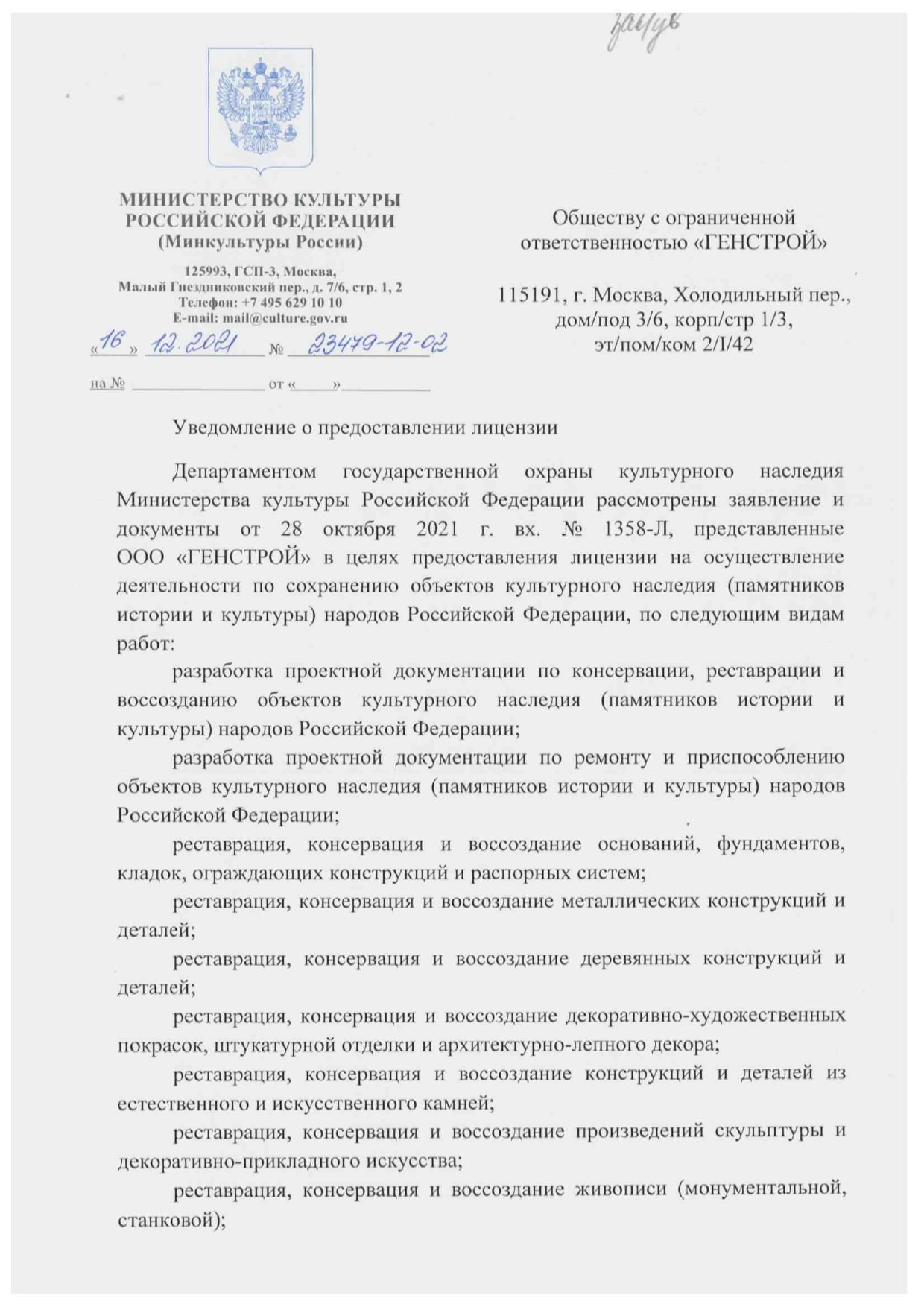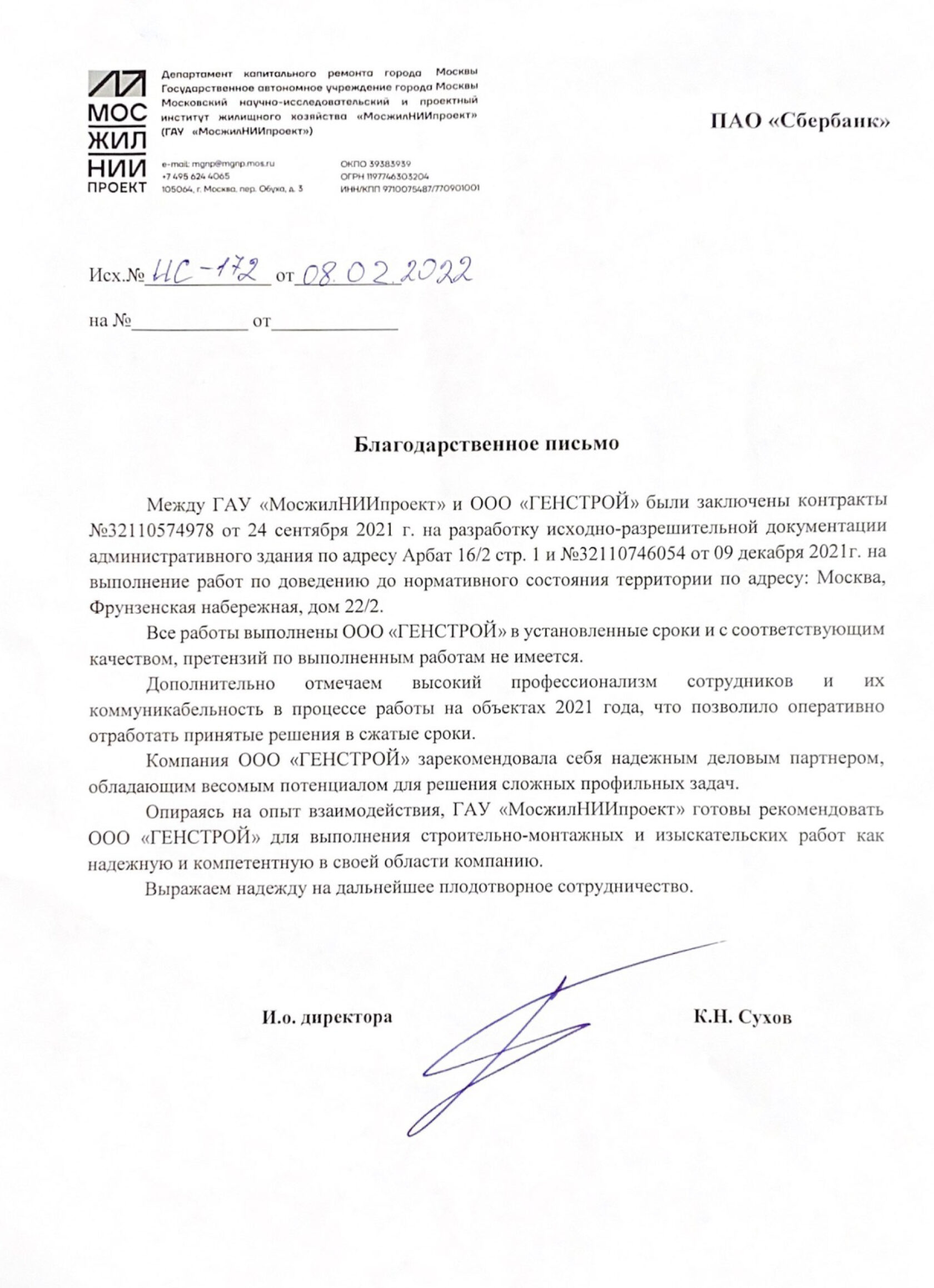 Генеральный подрядчик: ООО «Генстрой»